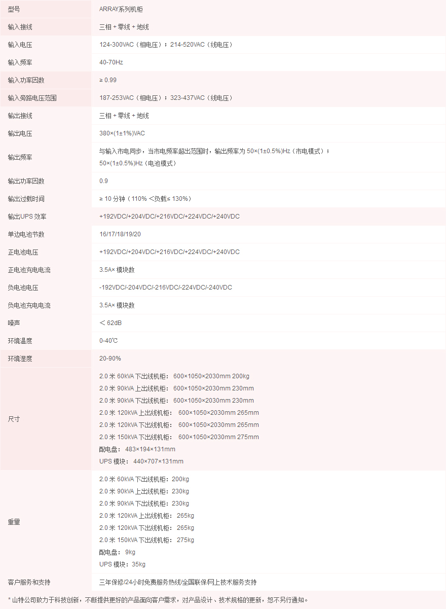 3A3 Pro UPS一個UPS模塊體積為440×700×131mm(3U),一個標準2米高的UPS機柜最多可以安裝10個UPS模塊,總容量達到150KVA,而且配電盤也含在其中,再配上與UPS機柜一般大小的電池柜,便可組成完整的UPS供電系統。由于UPS機柜和電池柜都采用標準機柜,與大多數機房的負載設備機柜一致,因此可以與負載并排放置而無需專用的UPS配電房,不僅美觀而且能為客戶最大限度地節省安裝空間。